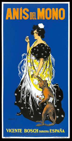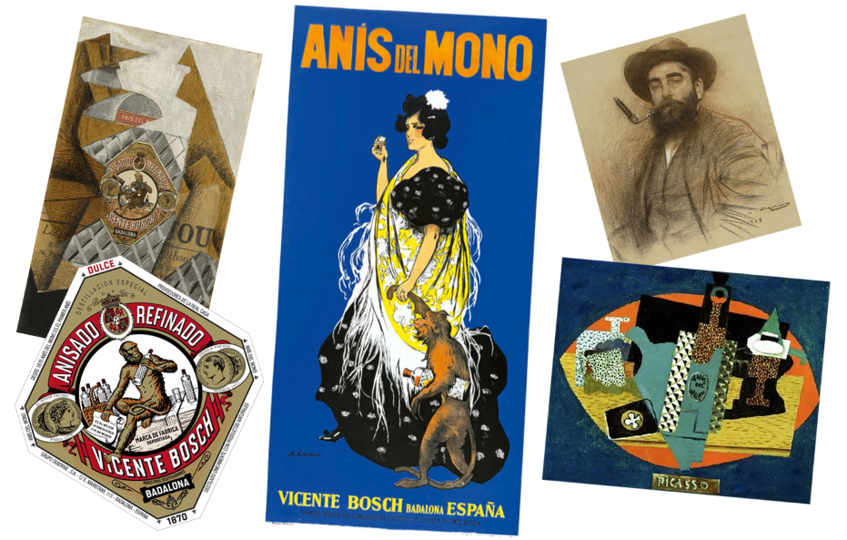 Casas Werk „Mona y Mono“ entstand 1898. Es zeigt eine elegante Dame mit einem Affen an der linken und einem Glas Anislikör in der rechten Hand, wurde zur Ikone der Marke und ist bis heute ein Klassiker des katalanischen Jugendstils.