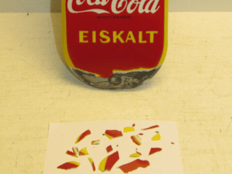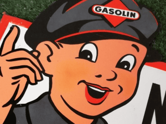 Äußerst attraktiv und nicht gerade häufig anzutreffen – auch wenn der Verkäufer es gerade 3 Mal im Angebot hatte (!) – ist dieses Blechschild von Vontinental-Reifen. “Kurzer Bremsweg – Nicht zu nahe” warnt das blonde Pin-Up den Betrachter …