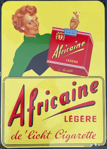 Am Beispiel eines seltenen Emailschildes, das in Belgien bei der ‘Emaillerie Belge Bruxelles’ Anfang der 1950er Jahre produziert wurde, und für die luxemburgische Zigarettenmarke ‘Africaine’ wirbt, zeigen wir hier, dass sich mit Hausmitteln bereits sehr schöne Erfolge erzielen lassen, wenn es darum geht, alten Reklameträgern durch das sanfte Entfernen von Schmutz wieder neues Leben einzuhauchen.