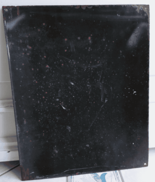 Stimmt: bei allen anderen bekannten Schilder haben die Brauen den gleichen Farbton wie das Gesicht. Auch uns ist kein zweites Exemplar mit diesem Merkmal bekannt. Vermutlich hatte der zuständige Arbeiter in den Union Werken A.G. in Radebeul wohl einen kleinen Moment der Unachtsamkeit beim Schablonierungsprozess vor mehr als 100 Jahren … Im Angebot war die Rarität bis zum Sonntag, den 6. Oktober 2024 um 20:02 Uhr. Das Schild erzielte 2.898€.