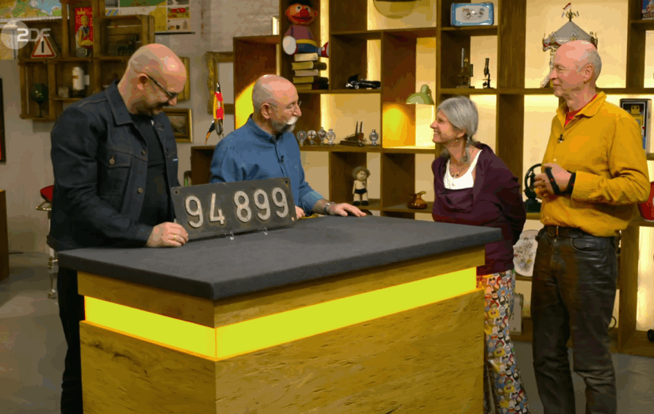Ein pensioniertes Lehrer-Ehepaar wurde am Donnerstag, den 11. September 2025 im Pulheimer Walzwerk vorstellig, um in der ZDF-Sendung “Bares für Rares” ein solches Lokschild anzubieten.