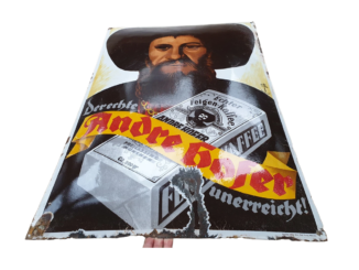 Ein Freiheitsheld wirbt für Kaffee: Dieses seltene Emailschild für den Feigenkaffee „Andre Hofer“ aus der Zeit um 1920 verbindet patriotische Symbolik mit früher Markenwerbung – und zeigt ein Porträt, das heute leicht gruselt. Bild: eBay.de ... weiterlesen