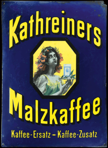 Die Verpackung war markenrechtlich geschützt und sicherte das Produkt gegen Nachahmungen ab. Neben der stringenten Markenpflege nutzte Kathreiner ein breites Spektrum an Werbemitteln: Sammelmarken, Postkarten, künstlerisch gestaltete Plakate, Blech- und Emailschilder sorgten für Reichweite und Bindung.