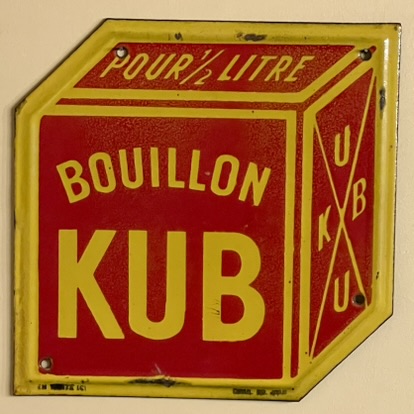 Bei Sammlern von Blech- und Emailschildern sind diejenigen der Brühwürfel der Marke KUB sehr begehrt. Es existieren viele verschiedene Varianten, vom kleinen Türschild bis hin zum großformatigen, schweren Werbeträger in Form des Würfels. Doch was bedeutet KUB eigentlich? Und was hat das “K” mit Spionagevorwürfen zu tun?