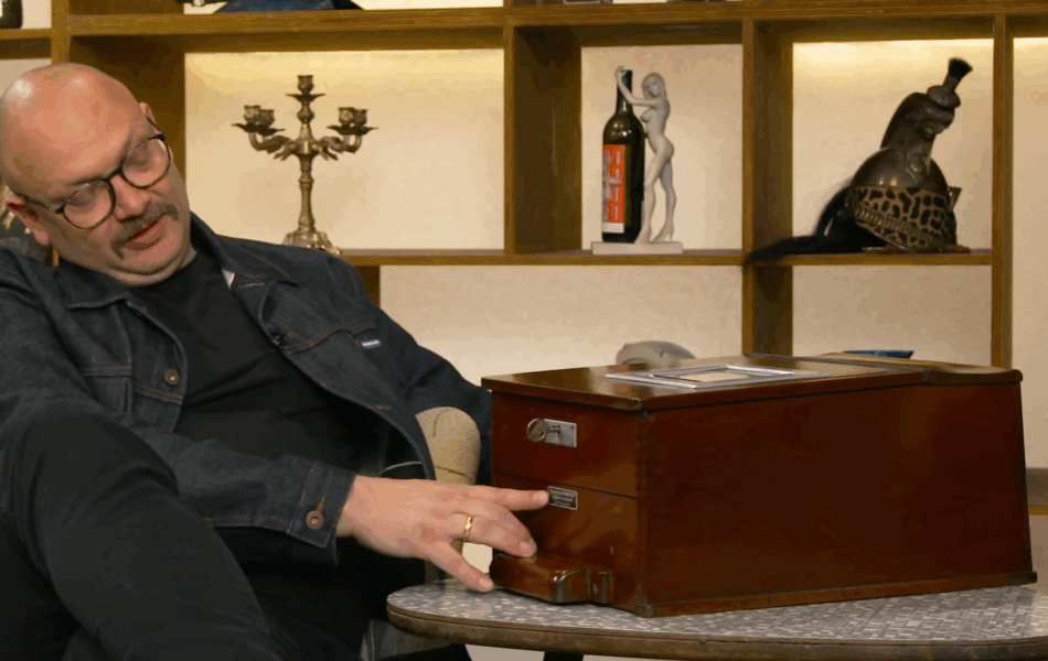 Die Kasse stieß im Händlerraum auf reges Interesse. Vor allem der besondere Mechanismus sorgte für Aufsehen. Händler David Suppes versuchte sich erfolglos daran, sie zu öffnen.