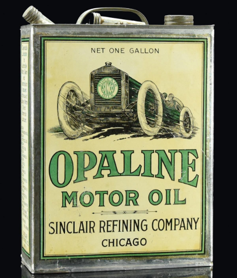 Damit wurde der Schätzpreis für dieses Objekt, eine Dose “Opaline Motor Oil” der “Sinclair Refining Company” aus den 1920er Jahren aus Chicago übetroffen. In der Artikelbeschreibung heißt es: “Eine wunderschöne Dose in unberührtem Fundzustand, oben noch mit allen Schraubverschlüssen und dem originalen Trichteraufsatz versehen, auch die Lithographie wunderbar erhalten.