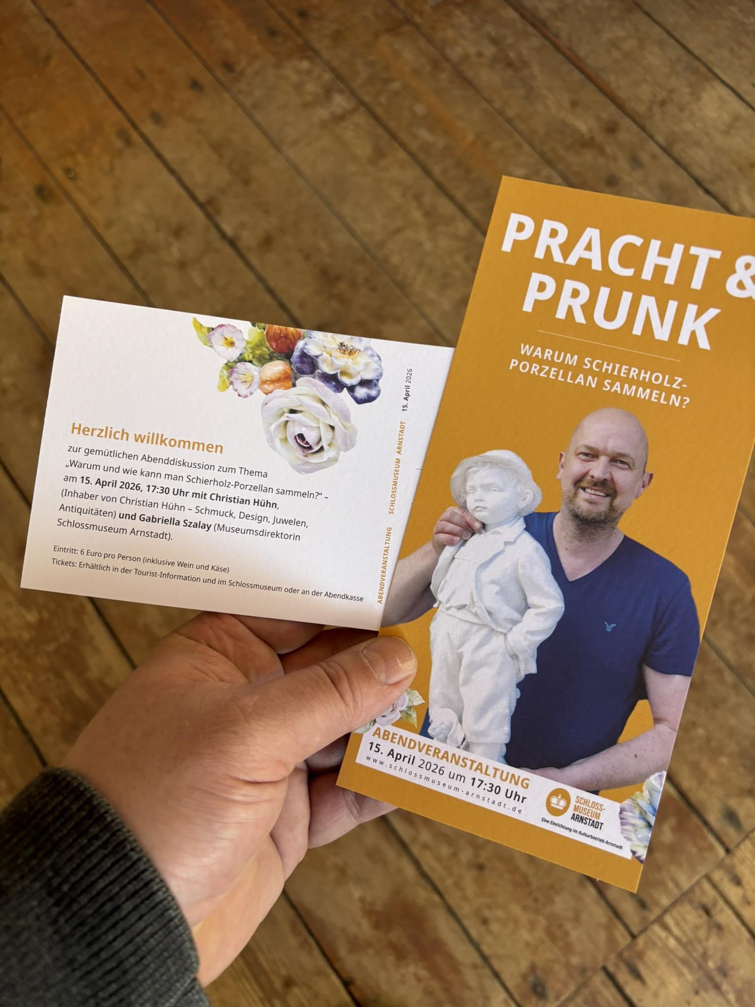 Schierholz-Porzellan: Diskussionsabend im Schlossmuseum Arnstadt Unter dem Titel „Pracht & Prunk – Warum Schierholz-Porzellan sammeln?“ lädt das Schlossmuseum ...- 1
