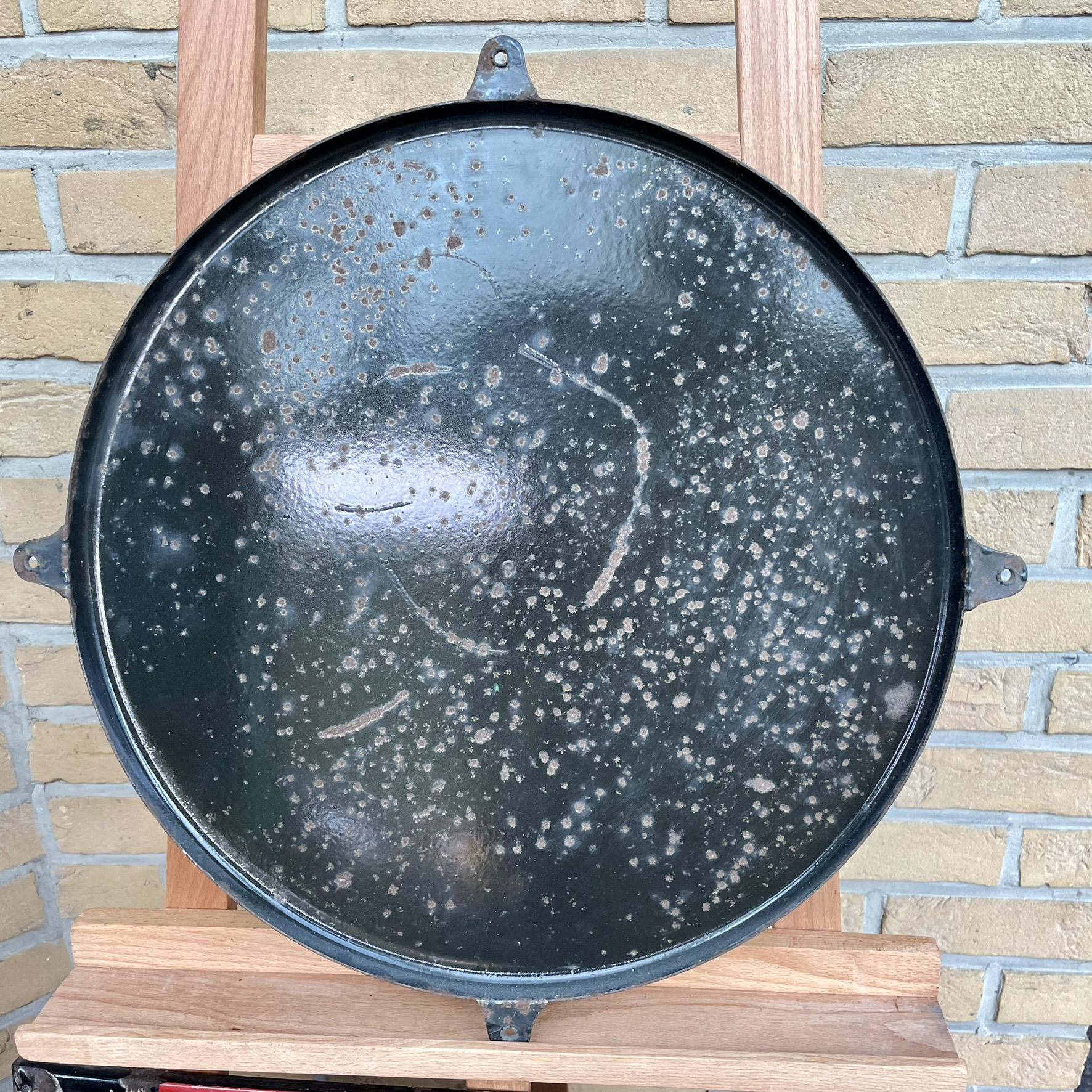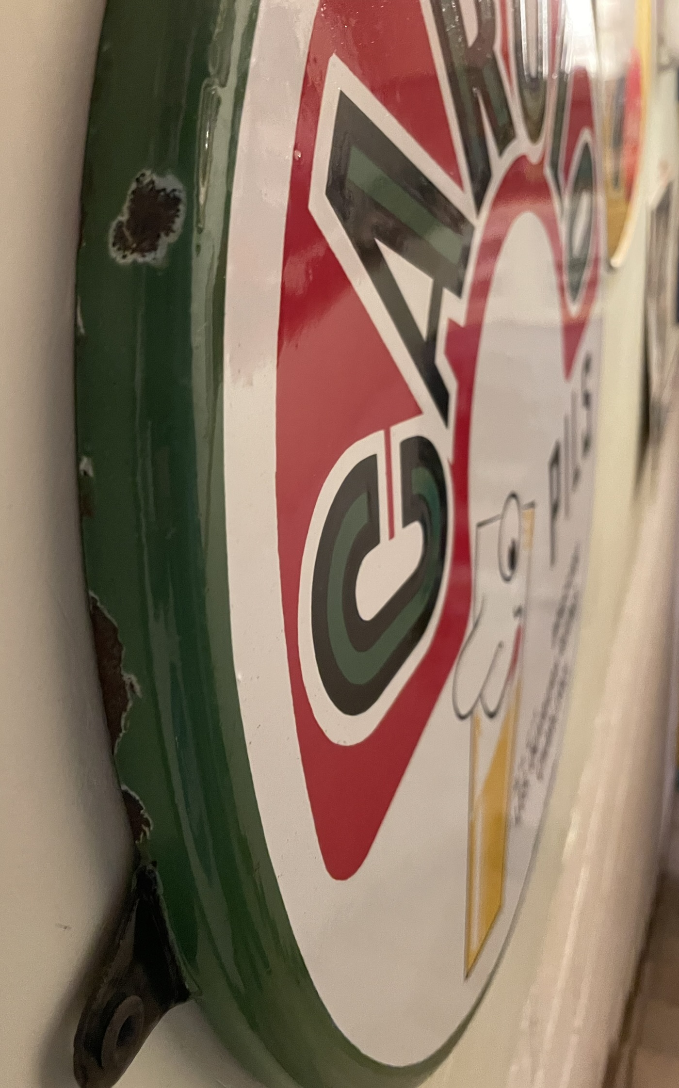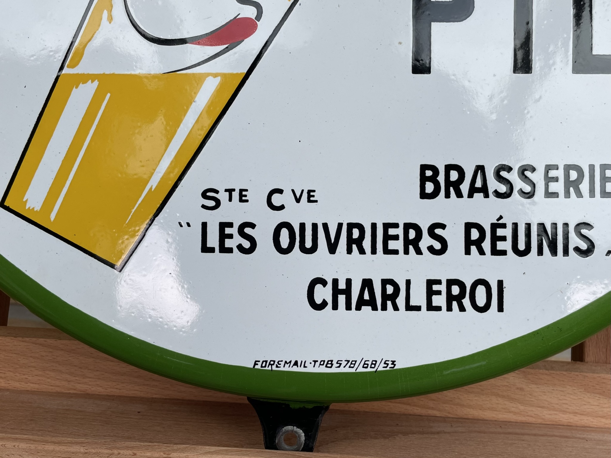 Das Schild ist rund, flach abgekantet und misst ca. 45 cm im Durchmesser. Bezeichnet ist es mit FOREMAIL-TPB578/68/53. Der Zustand ist sehr gut: Die Oberfläche und die Farben sind wunderschön erhalten. Lediglich am äußeren, abgekanteten Rand gibt es einige kleine Altersspuren. Siehe Bilder & Video!