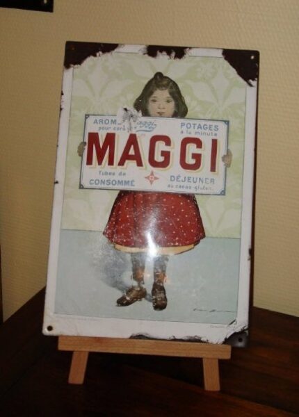 Legendär ist ebenfalls das Maggi-Mädchen von Bouisset: Es hält auf Plakaten und Schildern ein Emailschild der Marke vor sich. Ein weiterer genialer Entwurf aus der Hand des Franzosen.