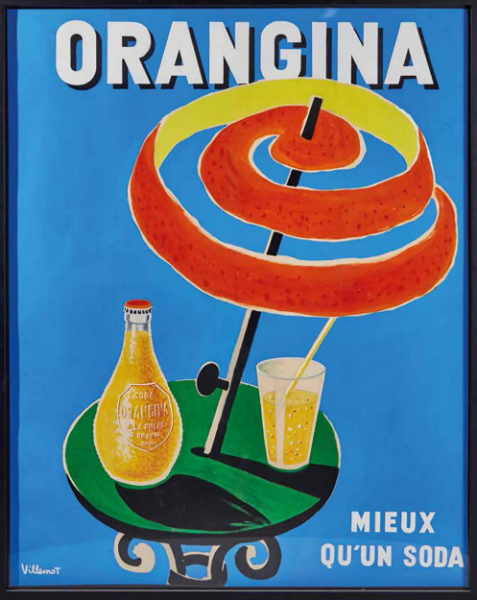 Das Plakat, das stark stilisiert drei Orangina genießende Damen am Strand zeigt, die halb von Sonnenschirmen verdeckt werden, übertraf dabei sogar den Preis einer Original-Gouache von Villemot zu einem Plakatentwurf für Orangina, bislang mit 13.500€ das teuerste gelistete Auktionsergebnis für den Franzosen (siehe Bild ganz oben).