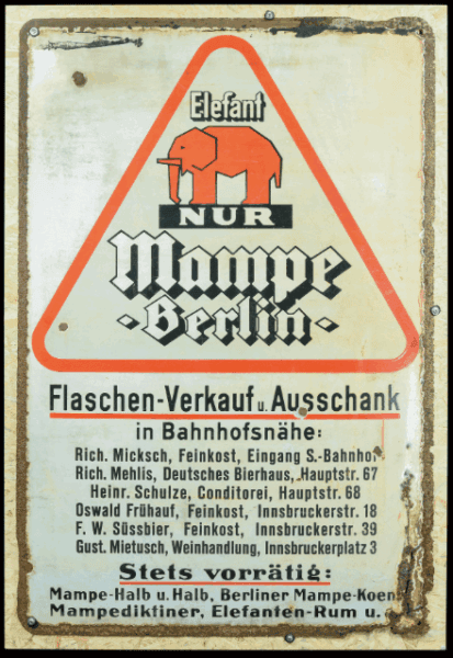 Der Berliner Mampe verstand sich früh auf Marketing: Probierstuben, Sponsoring und schließlich das Symbol, das die Marke unsterblich machen sollte: Ein Elefant.