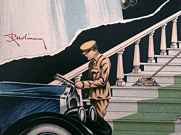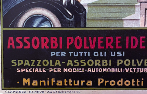 Rechts, über dem Kühler des Automobils, findet sich in roter Handschrift die Signatur „Ruolinani“ oder “Ruolinari”, oder … Auf jeden Fall kein Name, der in kunsthistorischen Standardwerken neben Cappiello oder Dudovich steht. Aber ein mit Talent gesegneter Grafiker.