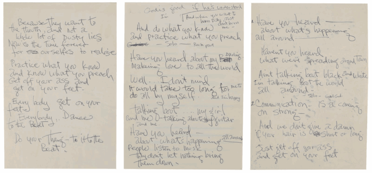 Ebenso vertreten: Ein weißer Fedora, getragen von Michael Jackson im Musikvideo zu Smooth Criminal, und handschriftliche Notizen von Jimi Hendrix – stille Zeugen kreativer Energie, konserviert für die Ewigkeit.
