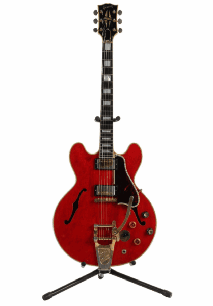 Zu den begehrtesten Losen gehört die rote Gibson ES-355, einst von Liam Gallagher gespielt, zerstört und später restauriert – ein Objekt, das Authentizität und Mythos gleichermaßen ausstrahlt. Die Schätzpreise reichen bis zu einer halben Million Pfund.