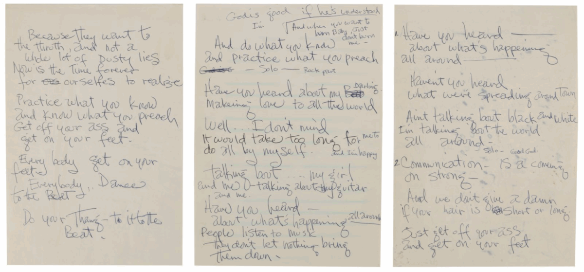 Ebenso vertreten: Ein weißer Fedora, getragen von Michael Jackson im Musikvideo zu Smooth Criminal, und handschriftliche Notizen von Jimi Hendrix – stille Zeugen kreativer Energie, konserviert für die Ewigkeit.