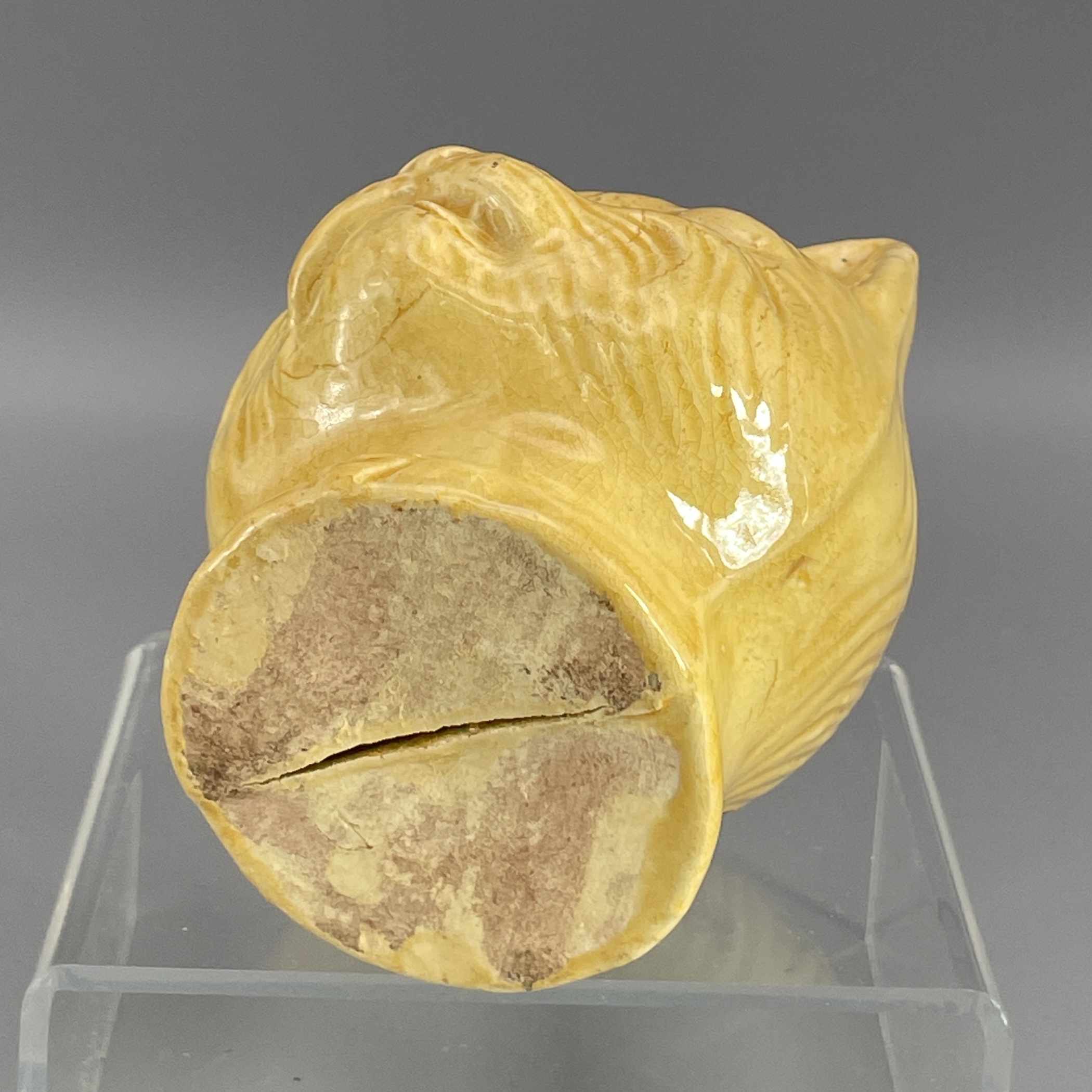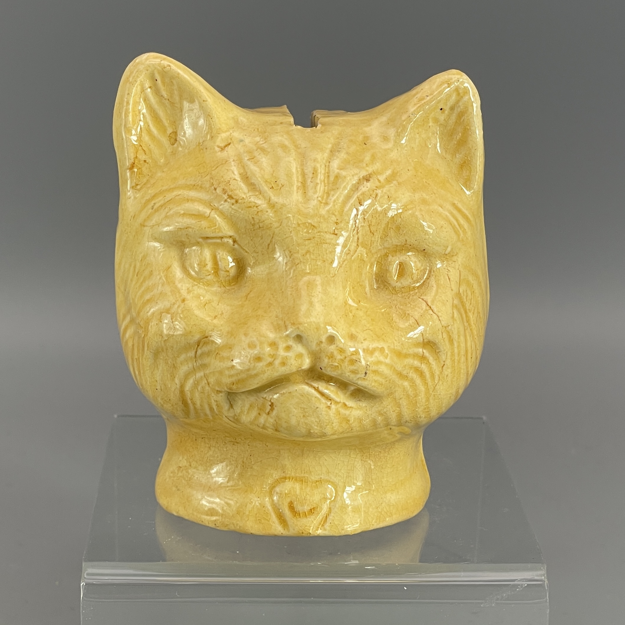 Schöner, seltener Katzenkopf aus Keramik als Spardose. Ca. 8,5 cm hoch. Vermutlich aus Österreich, um 1920, evt. auch früher. Schöner Zustand. Siehe Bilder!