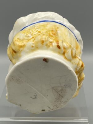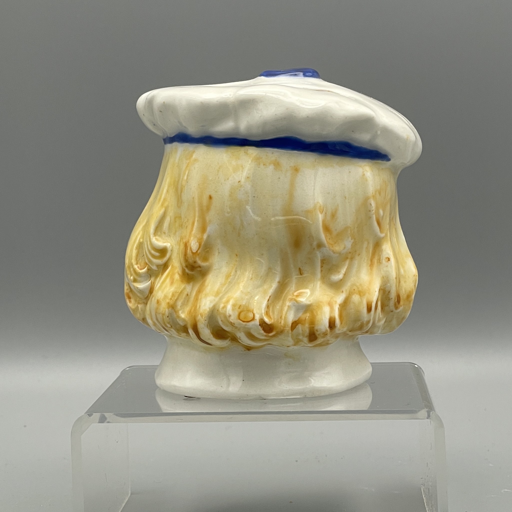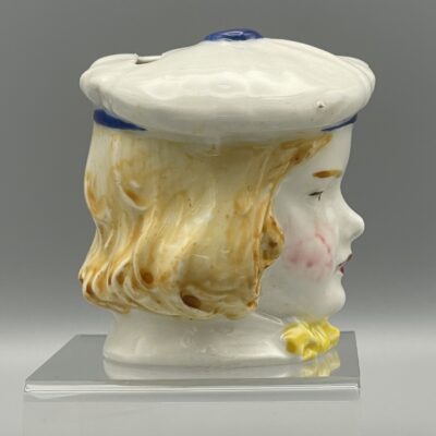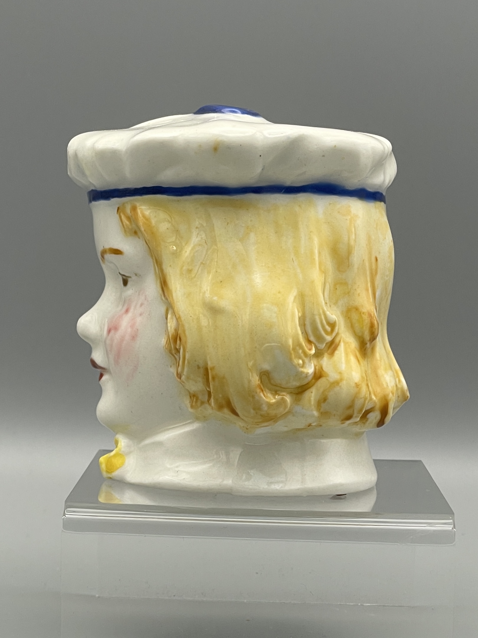Porzellanfigur, polychrome Glasur, die Büste eines blondgelockten Jünglings mit Matrosenmütze darstellend. Um 1910/20. Ca. 8 cm hoch. Spardose. Siehe Bilder!