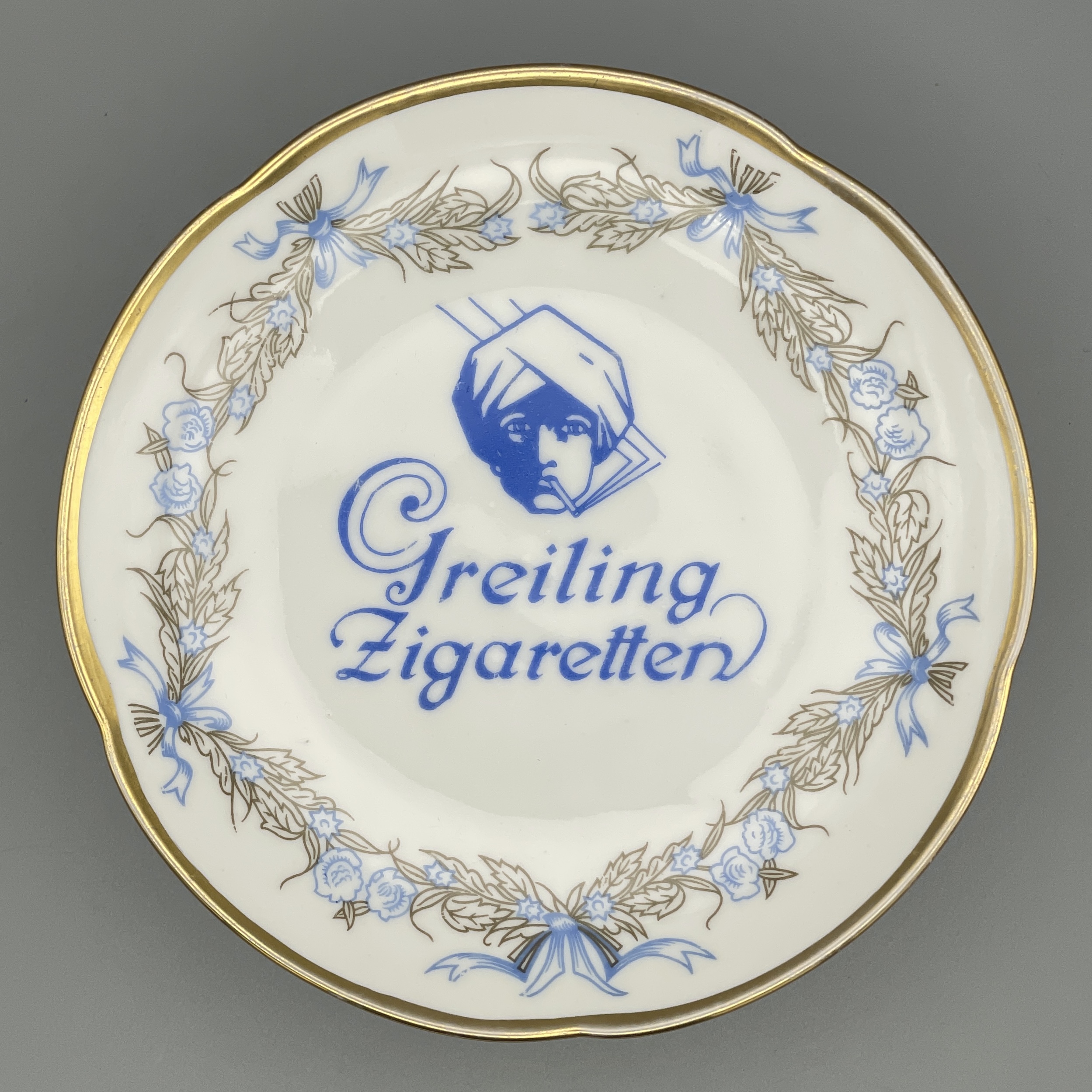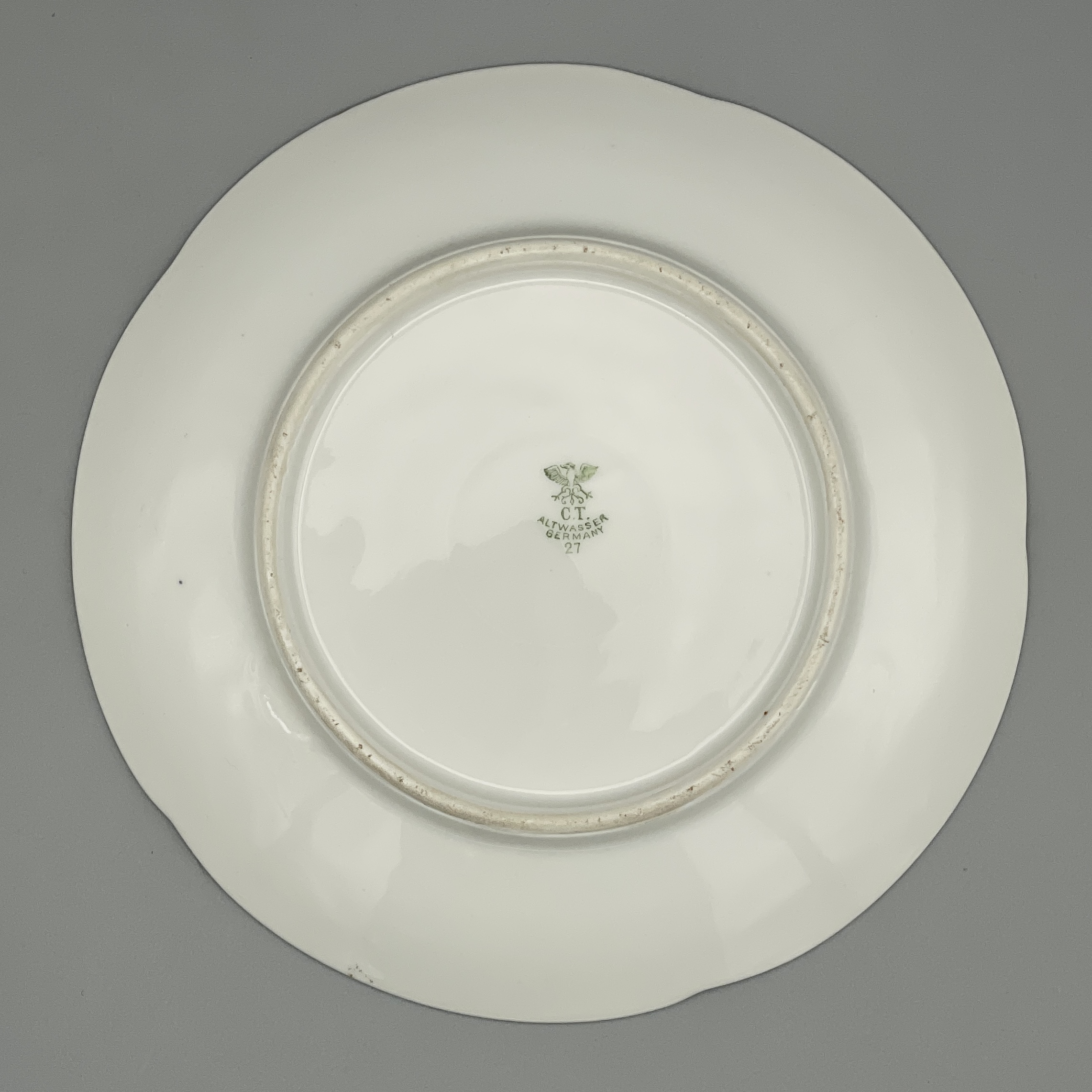 Die 27 im Stempel bedeutet wohl das Jahr (19)27. In diesem fast perfekten Zustand mit dem kräftigen Blau und dem noch gut erhaltenen Goldrand selten! Durchmesser: 15 cm. Siehe Bilder!