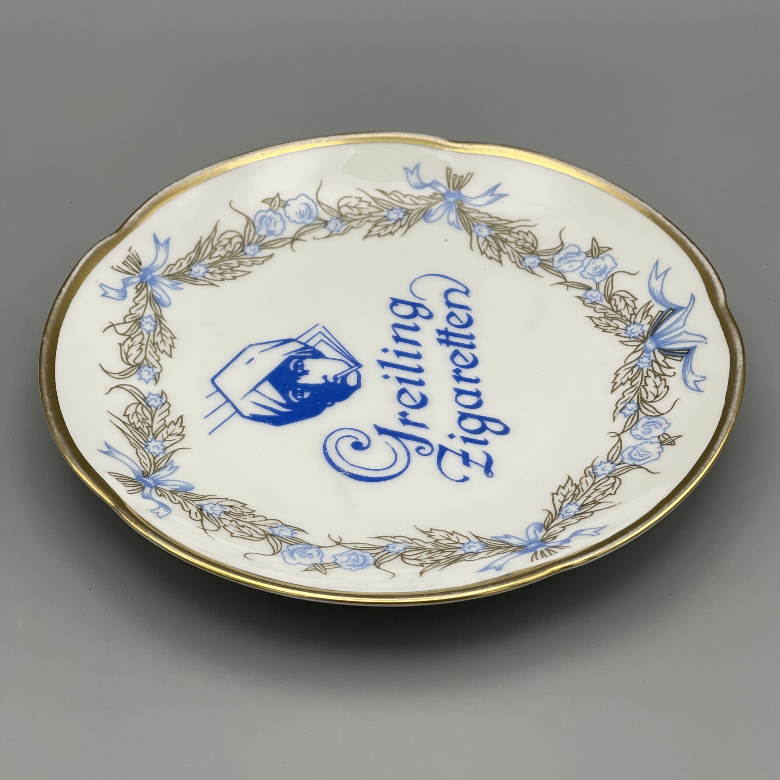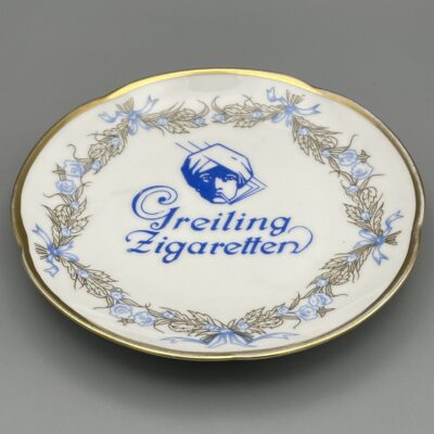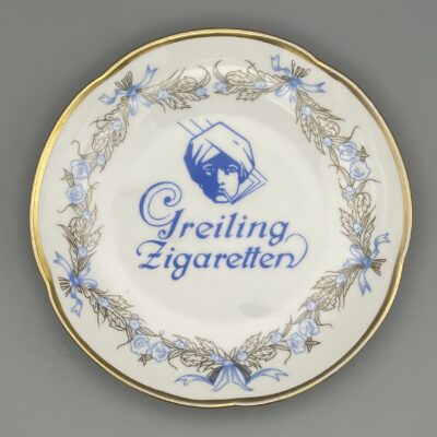 Sehr schön erhaltener, antiker Ascher aus der Manufaktur Carl Tielsch. Diese Porzellanfabrik, die in Altwasser, Schlesien (heute Stary Zdrój, Polen), ansässig war, existierte von 1845 bis 1932.