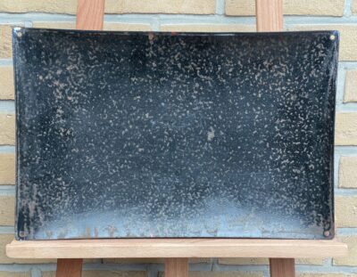 Das Schild ist stark gewölbt und sehr dick, fast schon zuckergussmäßig schabloniert. Es misst ca. 50 x 33 cm und verfügt über eine nahezu perfekte Oberfläche mit herrlichem Glanz!