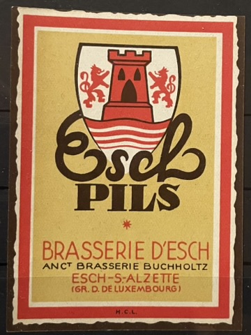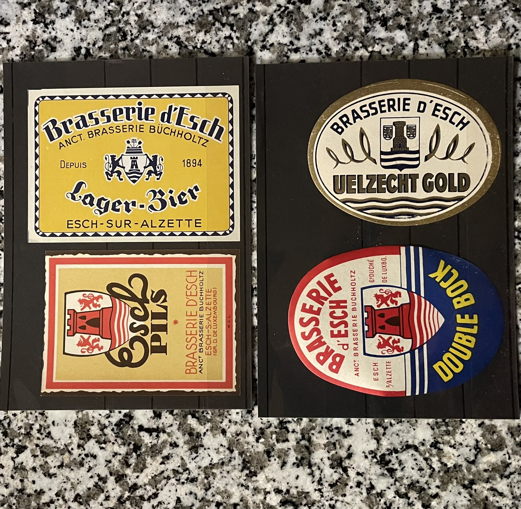 Sie stammen aus der nicht mehr existierenden Brasserie d’Esch (ehemals Buchholtz) aus Luxemburg. Auf dem gelben Etikett steht statt Buchholtz fehlerhaft der Name Büchholtz. Selten!